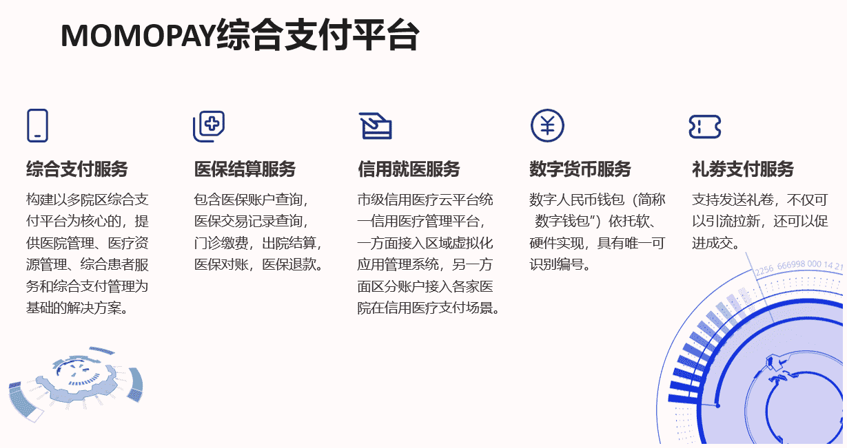 MOMOPAY綜合支付平臺是醫(yī)療支付領(lǐng)域的一項重要創(chuàng)新,它利用人工智能技術(shù)為醫(yī)院和患者提供更加便捷、高效和安全的支付體驗。