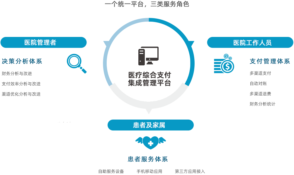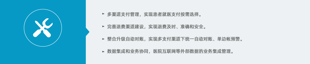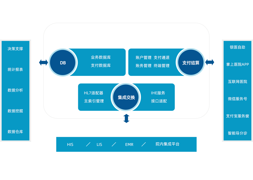 集成多種支付通道,供外部應用靈活調(diào)用,使患者按需選擇,并針對不斷豐富的支付方式,靈活的新增加載和管理。